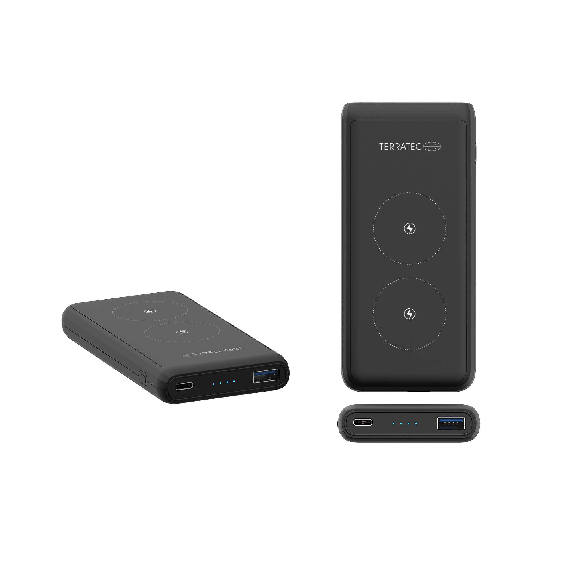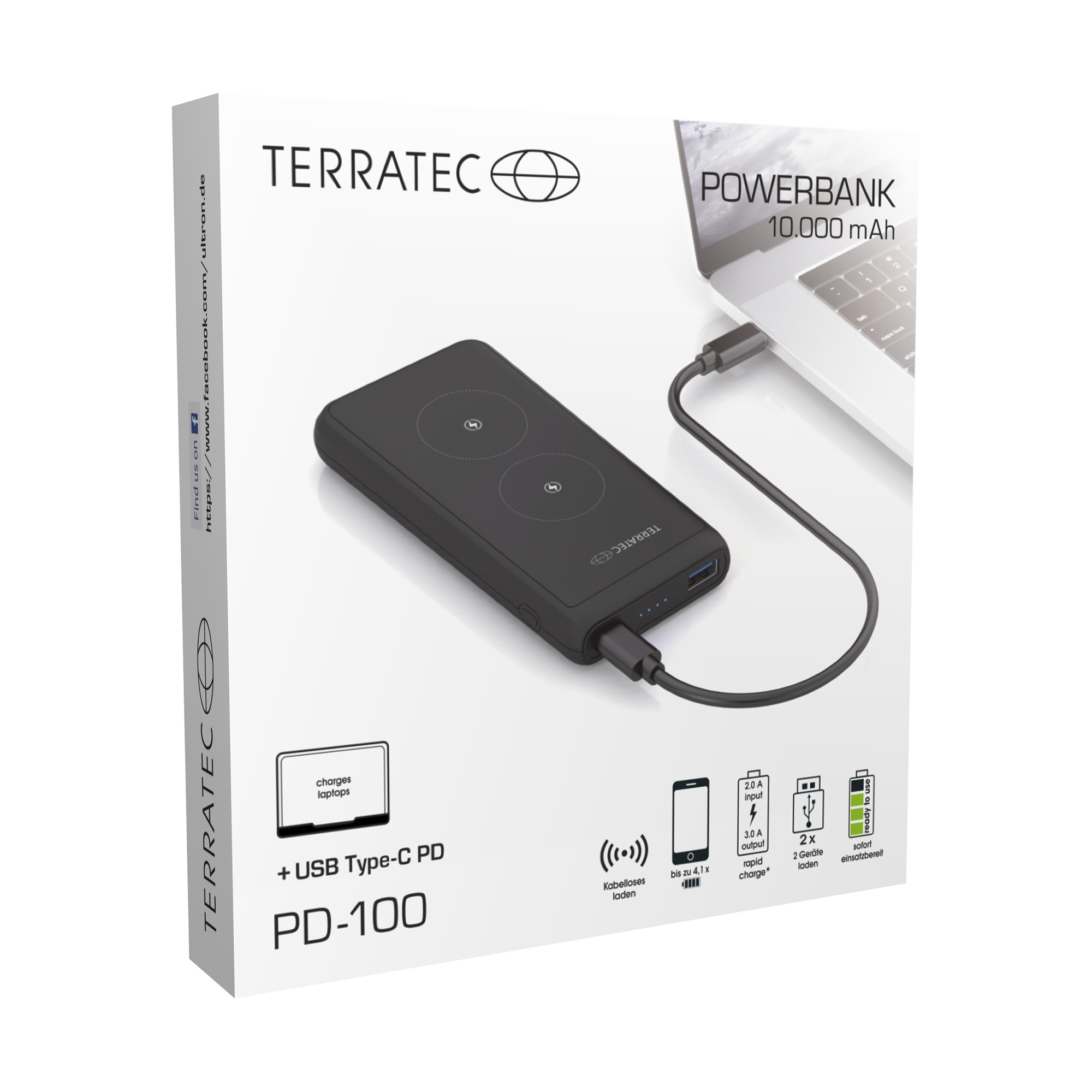Die TERRATEC PD-100 Powerbank kann sie alle: Der Energie-Riegel lädt Smartphone und Tablets sowohl kabellos als auch kabelgebunden und ist zusätzlich in der Lage, Notebooks über USB Type-C PD mit Power zu versorgen. Trotz der satten 10.000 mAh Kapazität bietet die PD-100 von TERRATEC einen schlanken Formfaktor. Den aktuellen Ladestatus zeigt die Powerbank über eine LED Anzeige an.