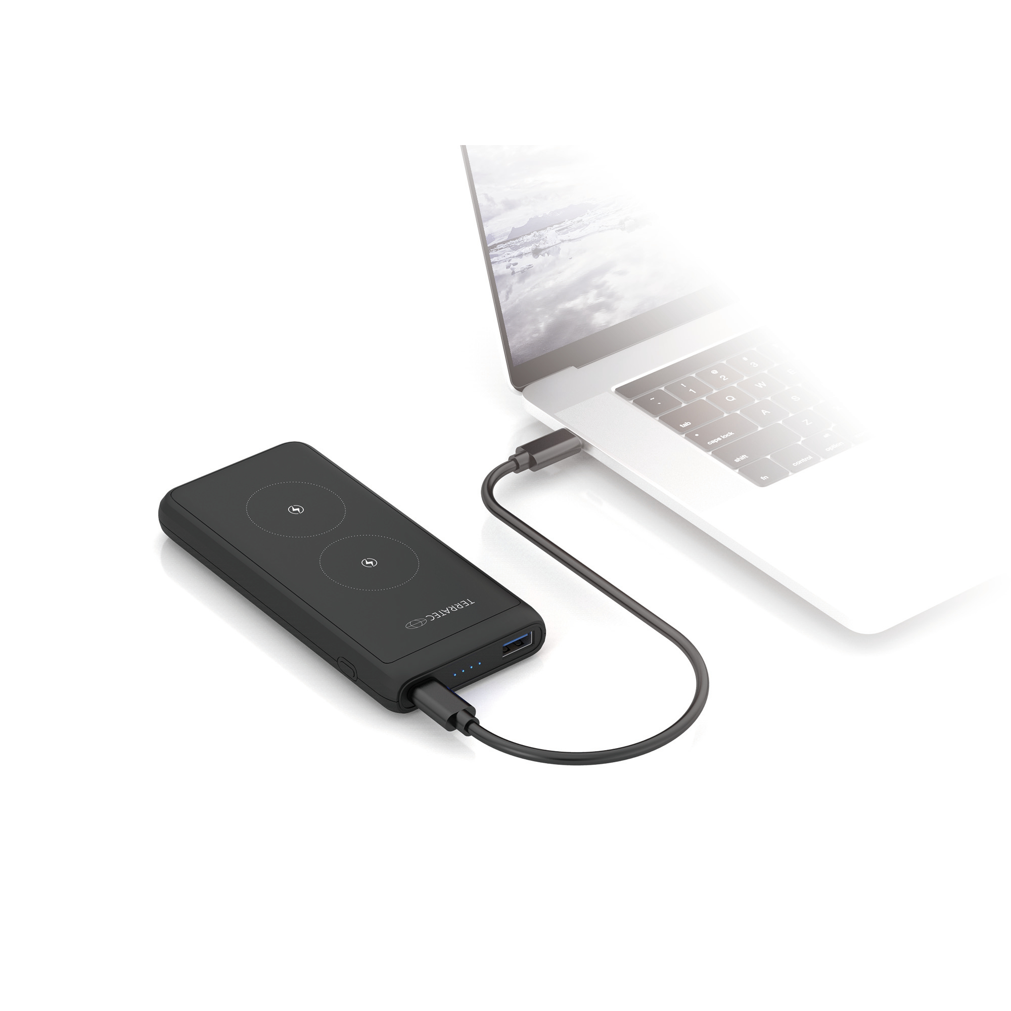 Powerbank mit 10.000 mAh für kabelloses und kabelgebundenes Laden von mobilen Geräten