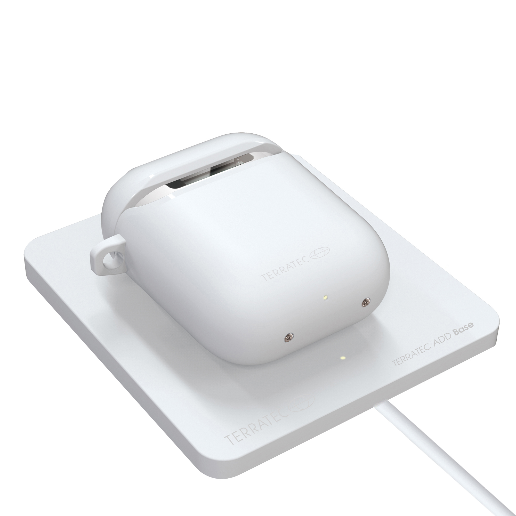Mit dem induktiven Ladepad TERRATEC ADD Base, sind die Apple AirPods im Handumdrehen aufgeladen und einsatzbereit. Im Flur, im Büro oder auf dem Nachttisch platziert, macht die formschöne kabellose Ladestation eine gute Figur und sorgt bequem dafür, dass der Nutzer das Haus nicht ohne aufgeladene AirPods verlässt. Ohne lästiges Einstecken von Kabeln lädt die ADD Base die Kopfhörer mit bis zu 5 Watt Output. Dank Ladedistanz von 6 mm können sie dabei sogar in der Schutzhülle verbleiben. Die Base verfügt über eine Mulde, in die sich das Case einfügt und so stetes optimal positioniert ist.